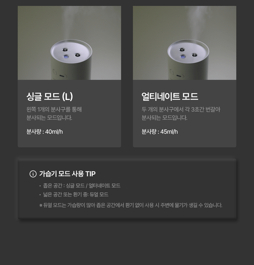 ※ 12/17 이전 생산분은 듀얼/얼터네이트 2가지 모드로 작동되며,