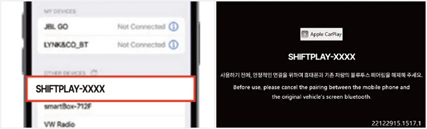 (사용 전에 휴대폰과 차량 순정 스크린의 블루투스 페어링을 해제해 주세요.)