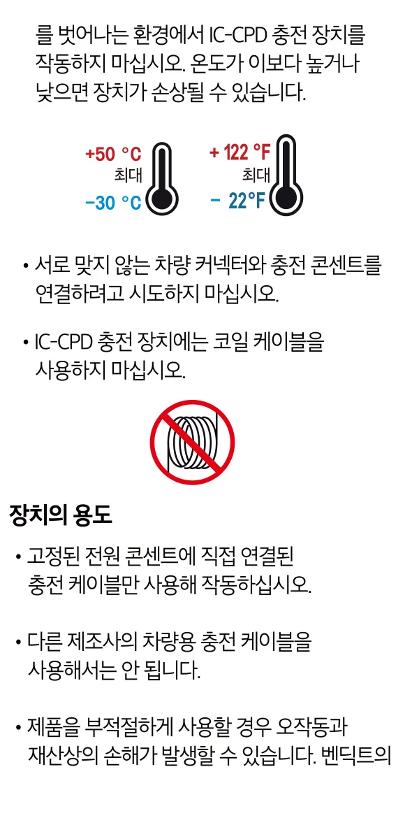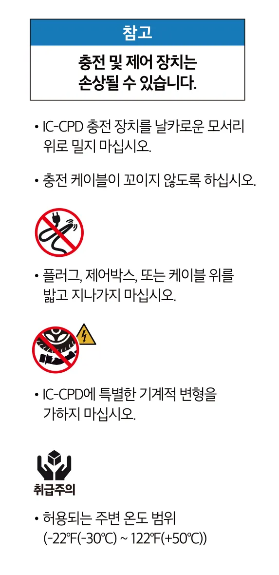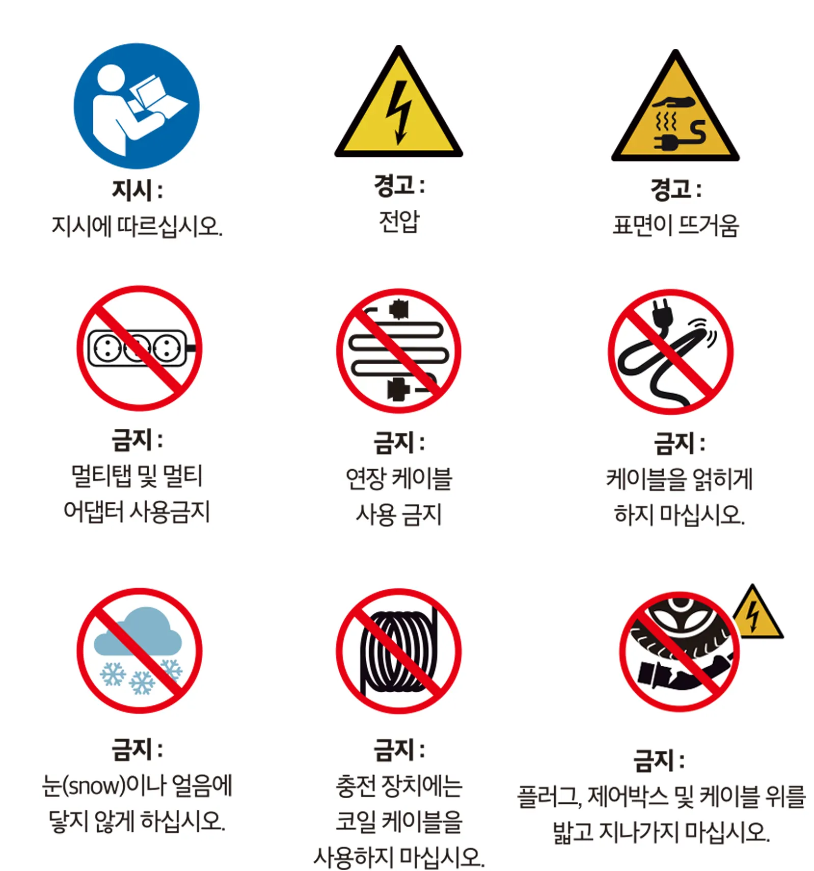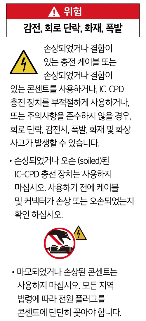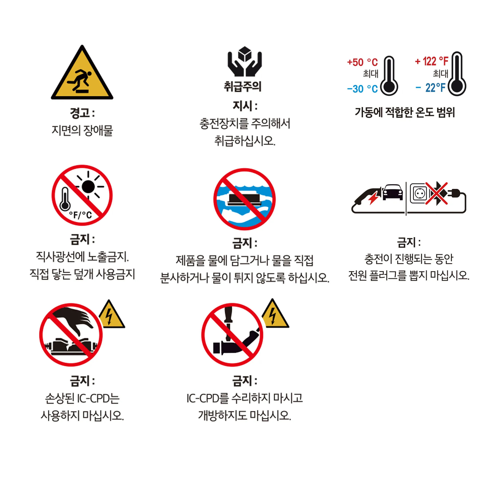 매번 충전기를 연결하기 전, 아래 사항을 반드시 확인해주세요. 안전 수칙 미준수로 인한 문제 발생 시 보증이 제한될 수 있습니다.