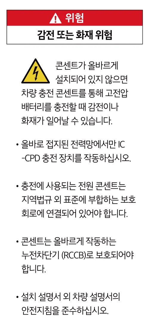 도전의 우려가 있으니 반드시 건물 관리 주체와 협의 후 충전을 부탁드립니다.