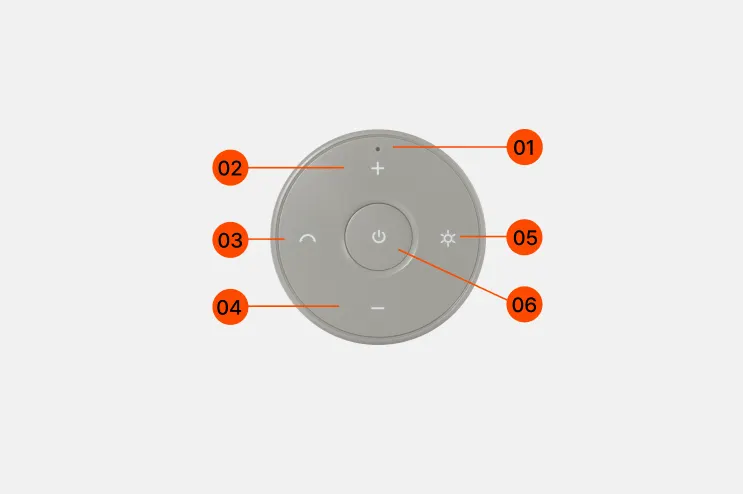 선풍기 회전 : 선풍기가 작동 중일 때, "☾" 버튼을 누르면 선풍기가 오른쪽으로 회전합니다.