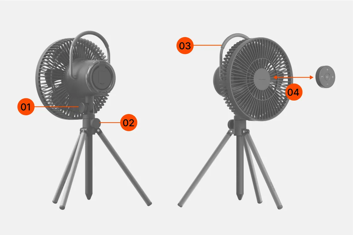 전원 버튼 : 전원 버튼을 누르면 선풍기가 켜지거나 꺼집니다.