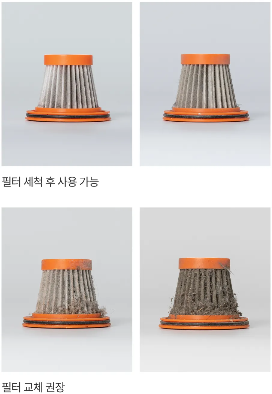 아래의 이미지를 확인하여 필터 교체가 필요한 경우 필터 세척보다는 교체를 권장 드립니다.