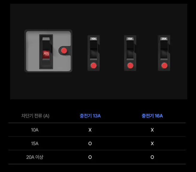 총 5가지 전류 설정 가능(6A/8A/10A/13A/16A)