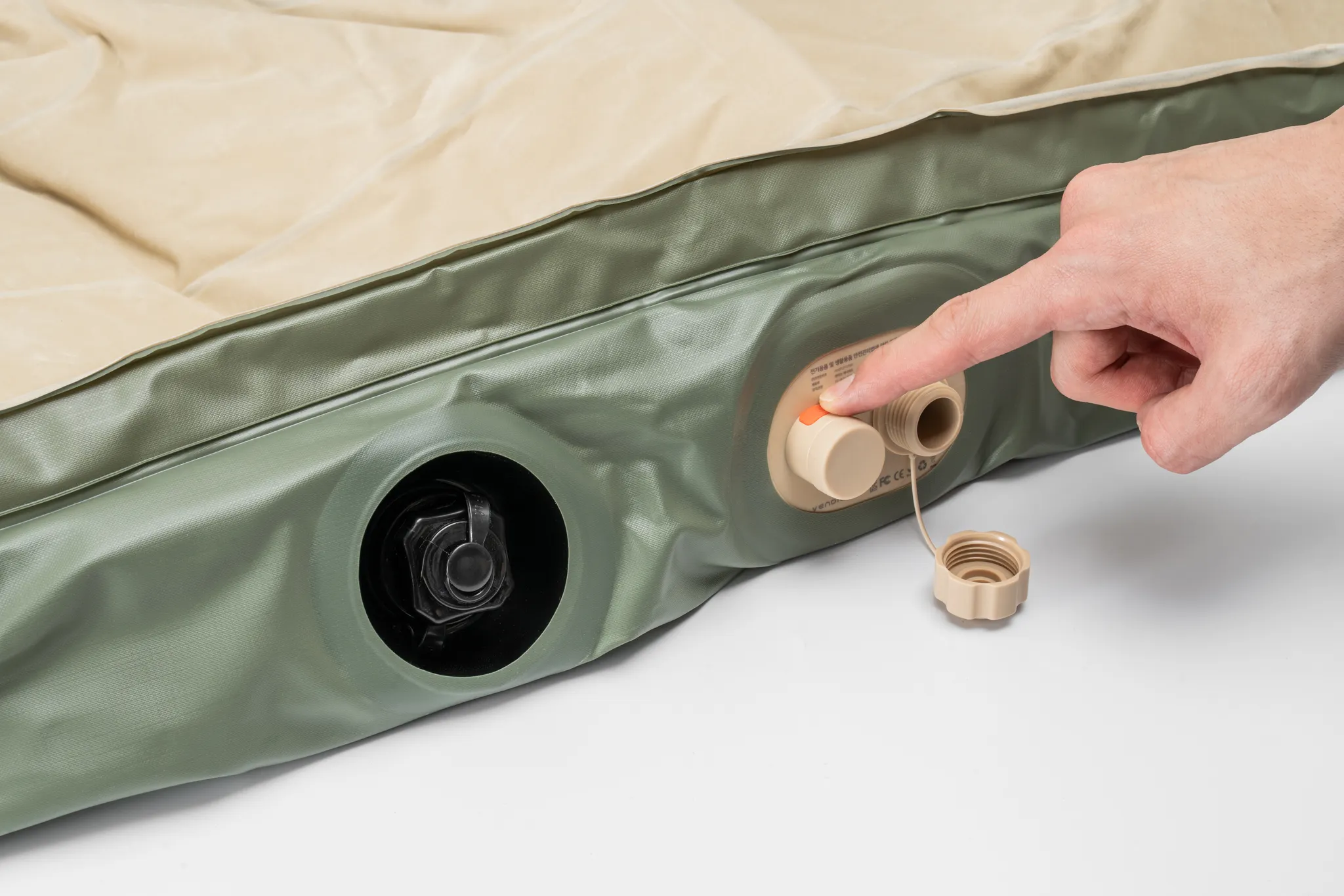 배기구와 흡기구 뚜껑을 모두 열고 매트를 돌돌 말아주며 나머지 바람을 빼주세요.