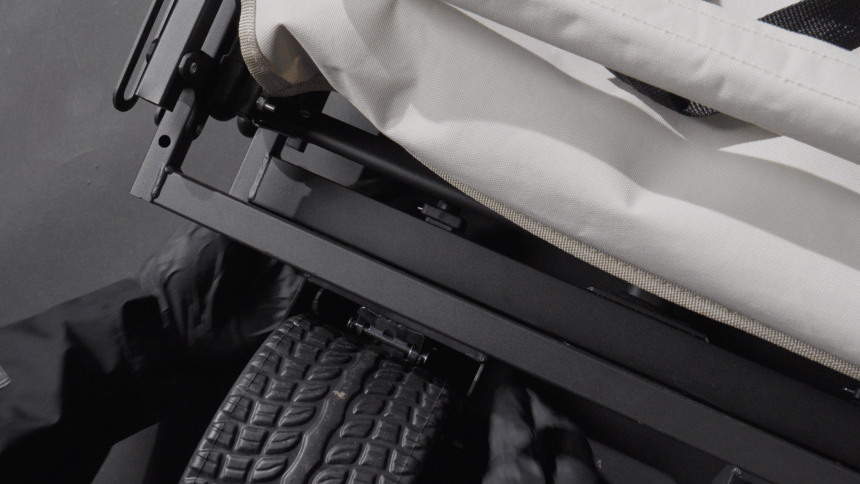 웨건의 하부프레임에 고리를 걸고 나사를 조여주세요.