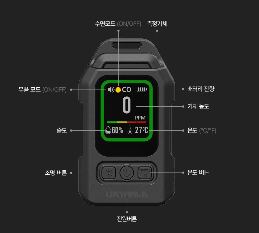 위험 구간의 알림 시작을 400ppm으로 설정할 수 있으나,