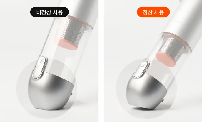 필터 결착 상태 확인 → 스테인리스 필터와 HEPA 필터가 정확하게 결합되어 있는지 확인해주세요.
