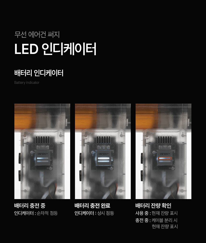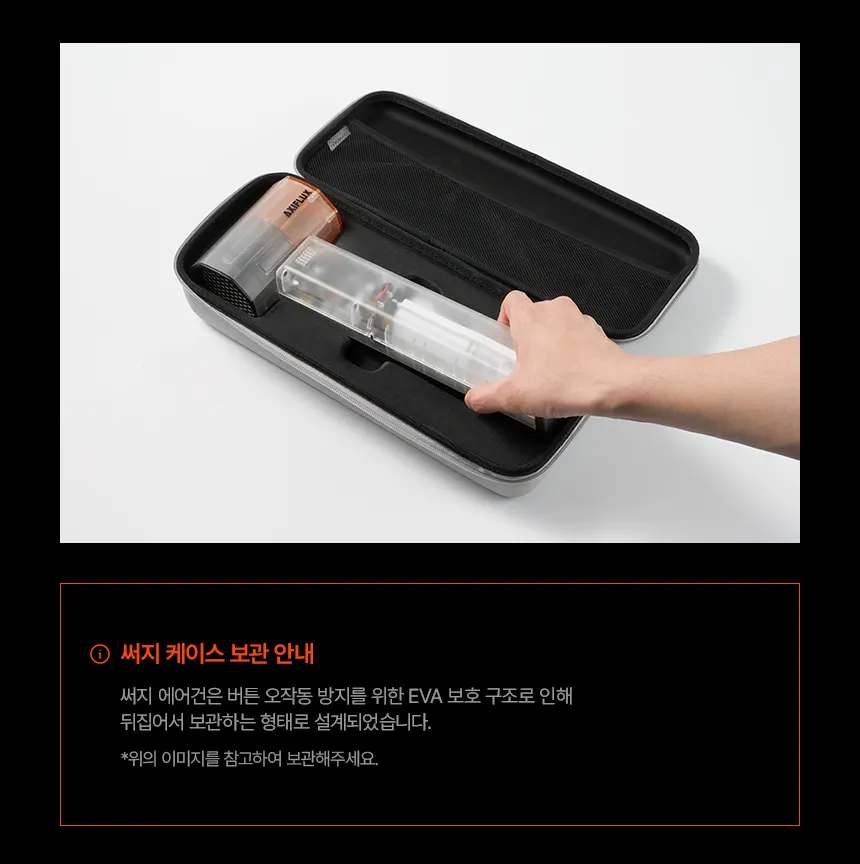 써지 에어건은 C-type 충전 포트를 사용합니다. 충전 케이블을 써지 에어건의 충전 포트에 정확히 연결하세요.