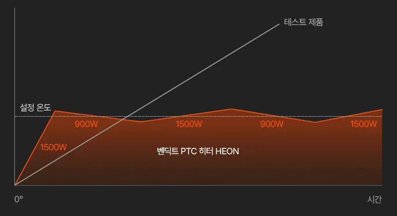 설정 온도 도달 시 제품을 멈추는 작동이 아닌, 출력을 줄여가며 온도를 유지하는 방식입니다.