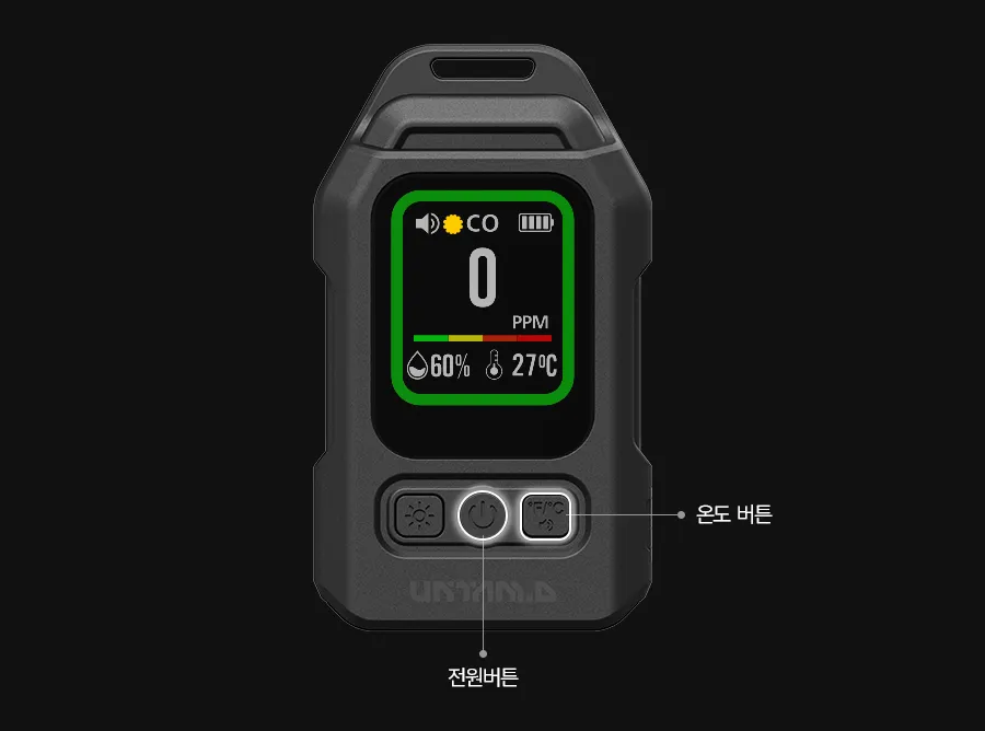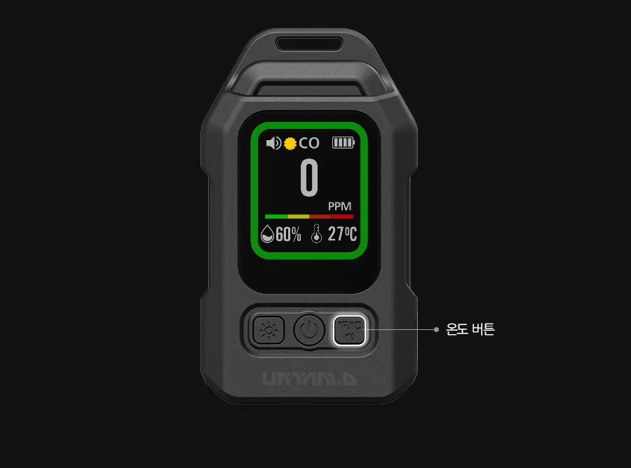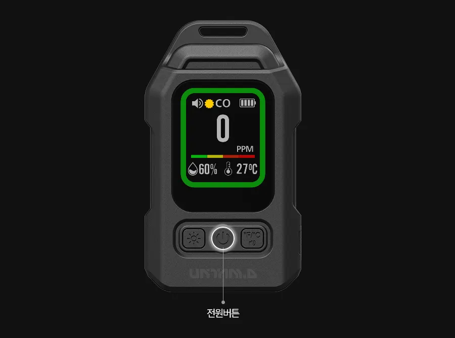 전원버튼을 짧게 누르면 CO/CO2 모드가 전환됩니다.