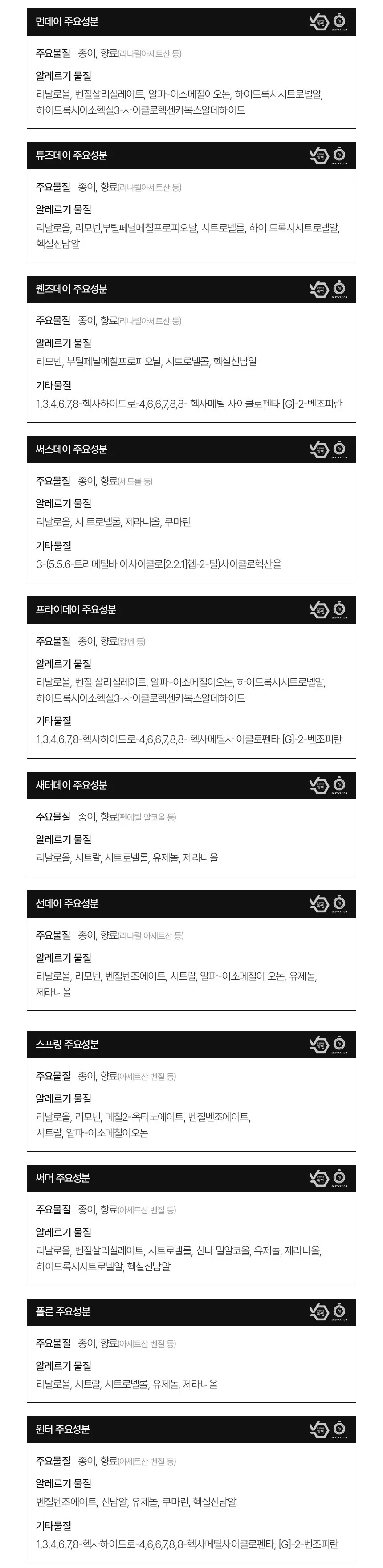 향 구성 | 요일별 향 구성 (MONDAY ~ SUNDAY)