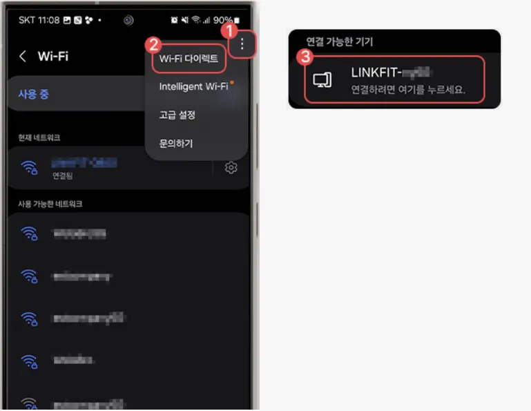 *STEP 02 진행 후에는 링크핏과 와이파이가 잠시 연결이 해제된 상태로 표시될 수 있습니다