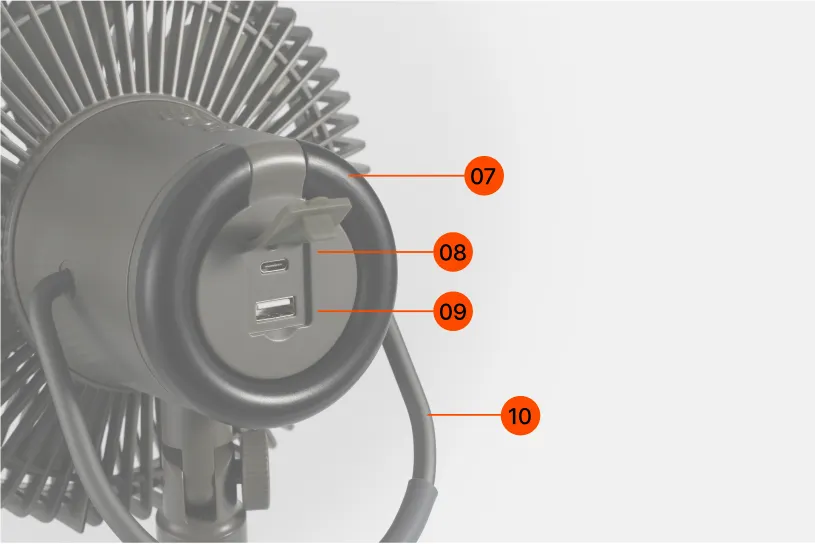 전원 버튼 : 전원 버튼을 누르면 선풍기가 켜지거나 꺼집니다.