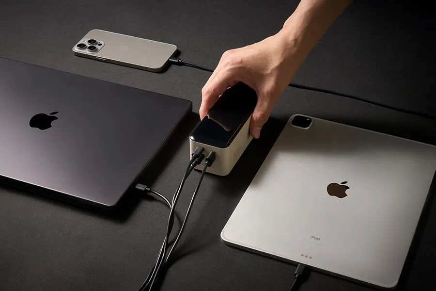 보조배터리의 출력 포트 (C1, C2, USB-A)에 충전 케이블을 연결 후 반대쪽 포트를 충전 기기에 연결해주세요.