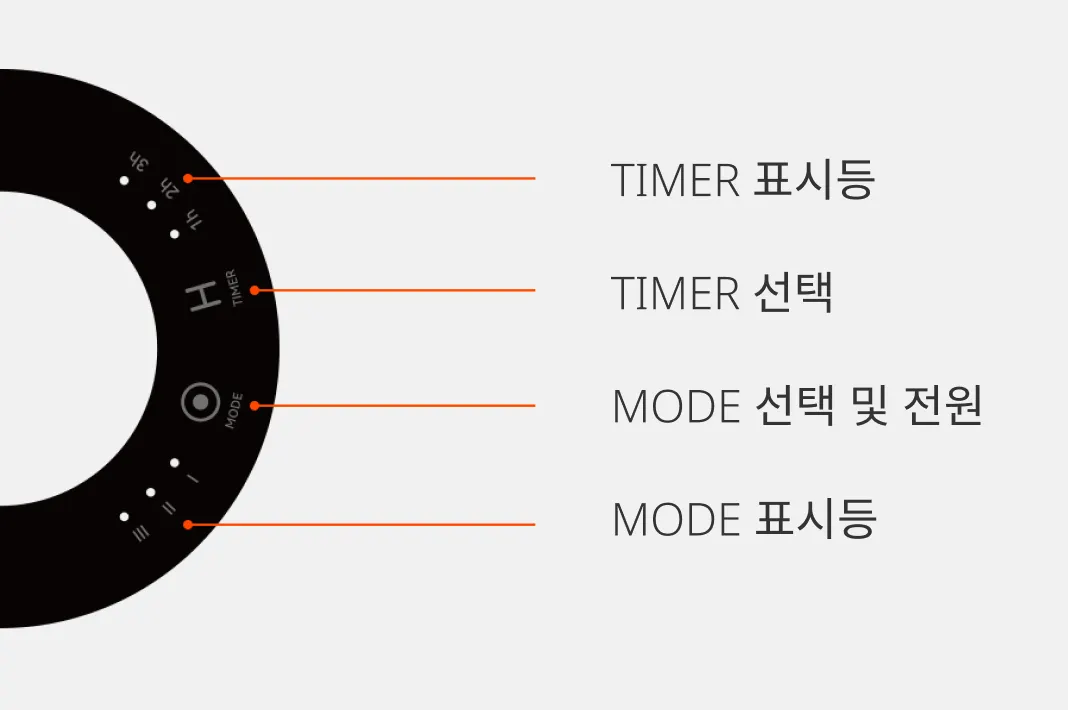 1h : 1시간 작동 후 종료 / 2h : 2시간 작동 후 종료 / 3h : 3시간 작동 후 종료