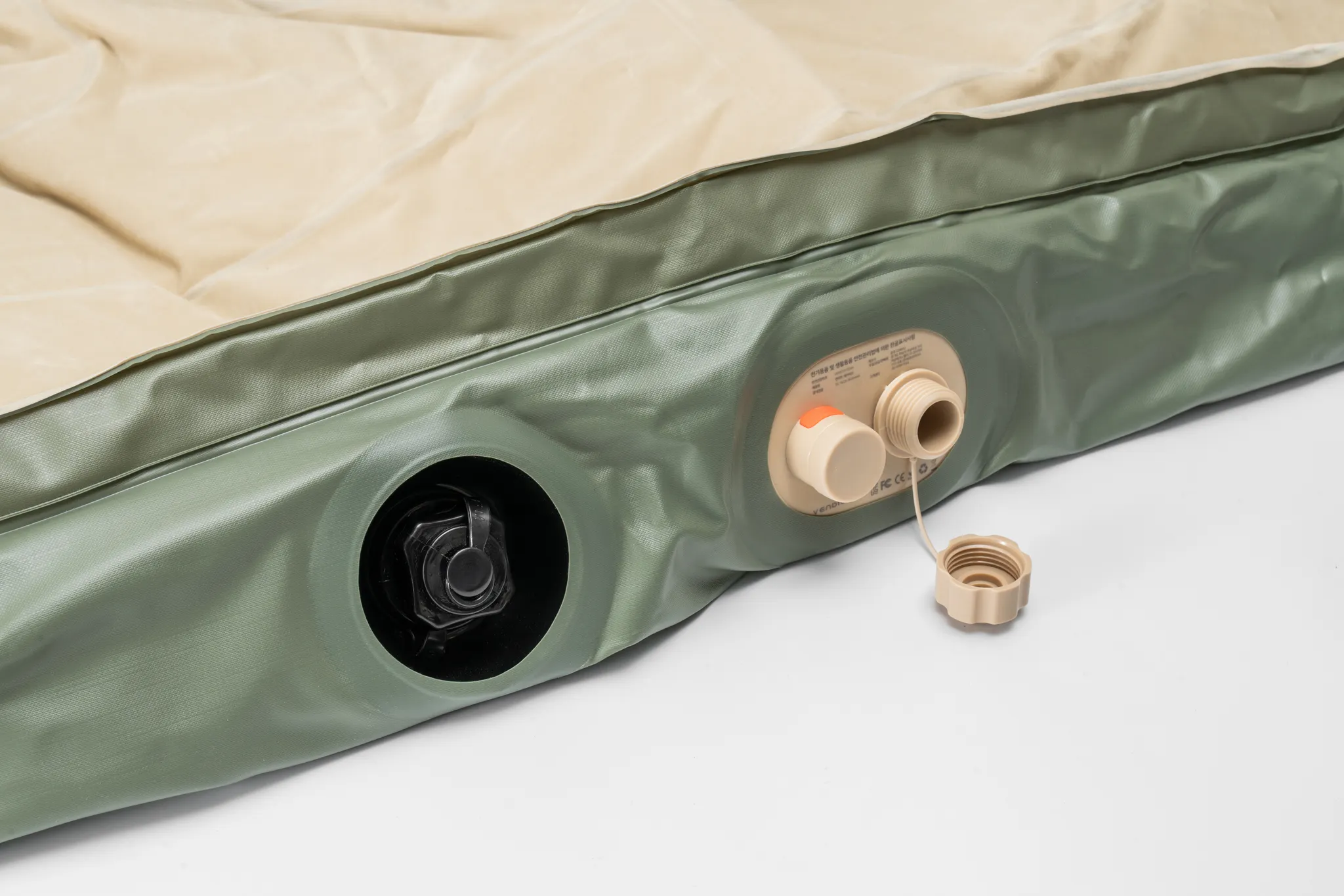 배기구와 흡기구 뚜껑을 모두 열고 매트를 돌돌 말아주며 나머지 바람을 빼주세요.