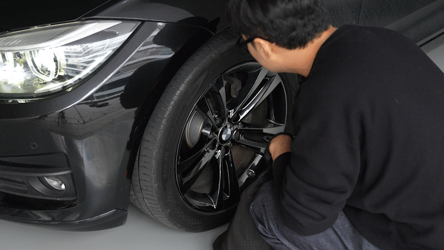 제품이 타이어에 완전히 감싸졌는지 확인합니다.