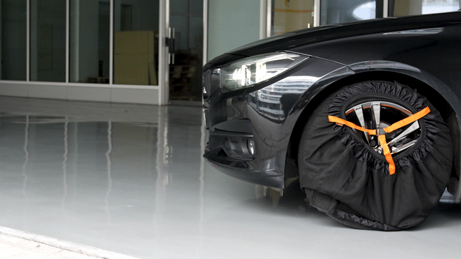 타이어가 접지된 면을 제외하고 최대한 씌워줍니다.