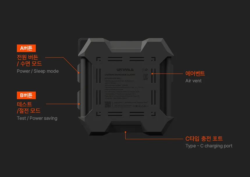 B버튼을 길게 누르면 경보음 테스트가 5초간 진행됩니다.