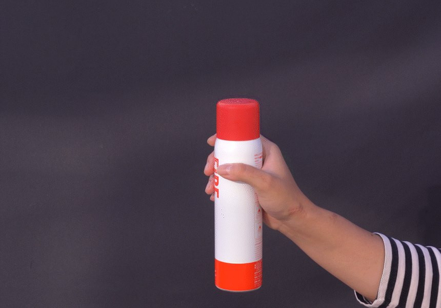 손잡이 버튼(분사 버튼)을 눌러 소화액을 분사합니다.