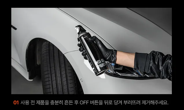 타이어 접지면(노면과 닿는 부분)에 골고루 분사해 주세요.