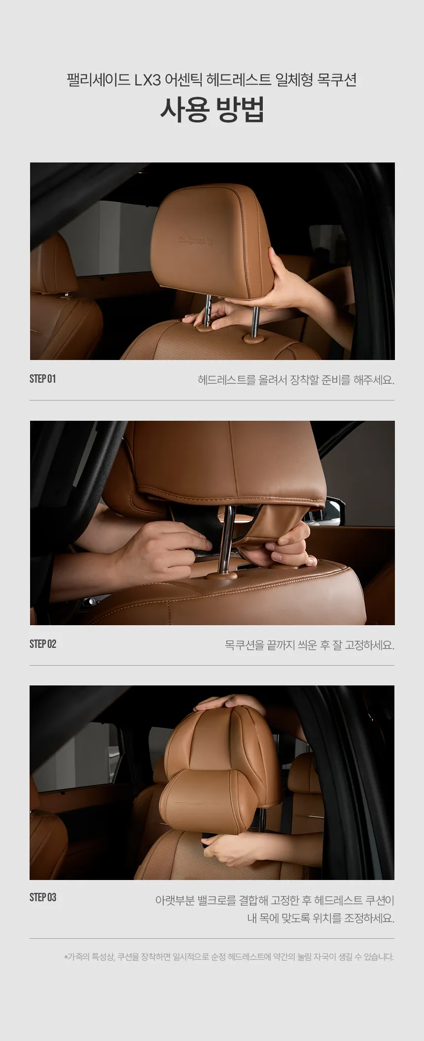 헤드레스트를 분리하거나 별도의 공구를 사용할 필요가 없습니다.