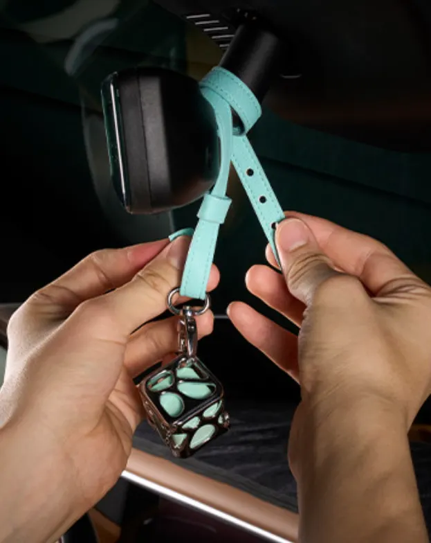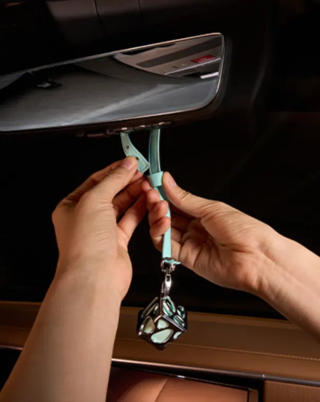 스트랩을 차량의 룸미러에 걸어줍니다.