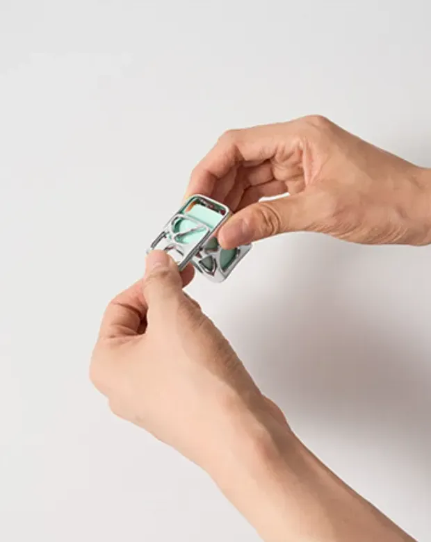 큐브 케이스를 열고 향 큐브를 끝까지 밀어 넣은 뒤 닫습니다.
