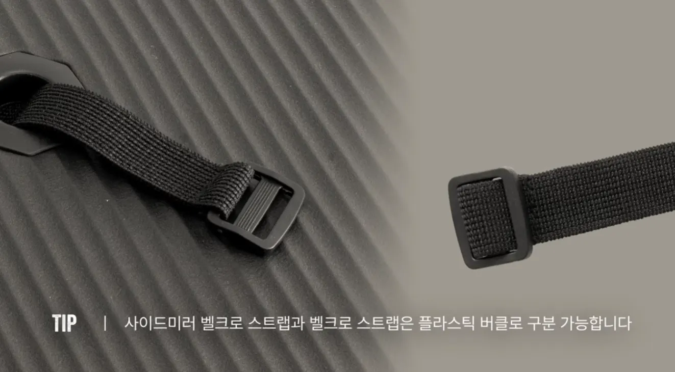 스트랩 커버에 사이드미러 벨크로 스트랩을 넣어주세요.