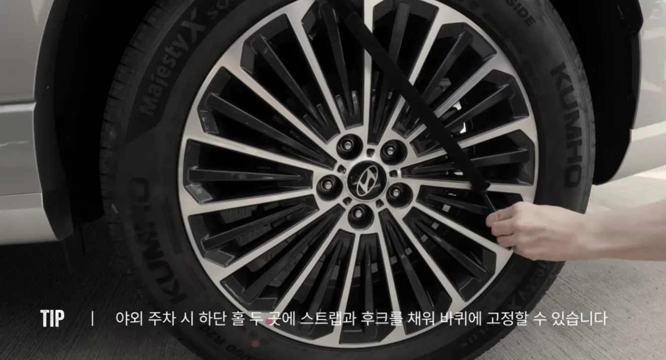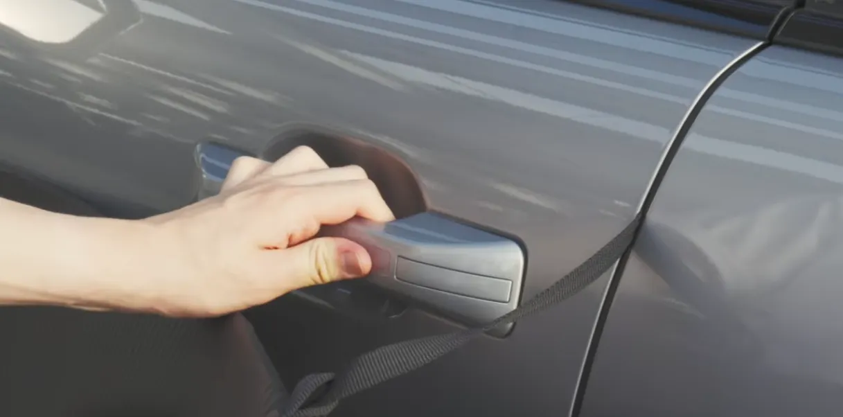 도난 방지끈을 바깥으로 빼준 뒤 차량의 앞 문을 닫아주세요.