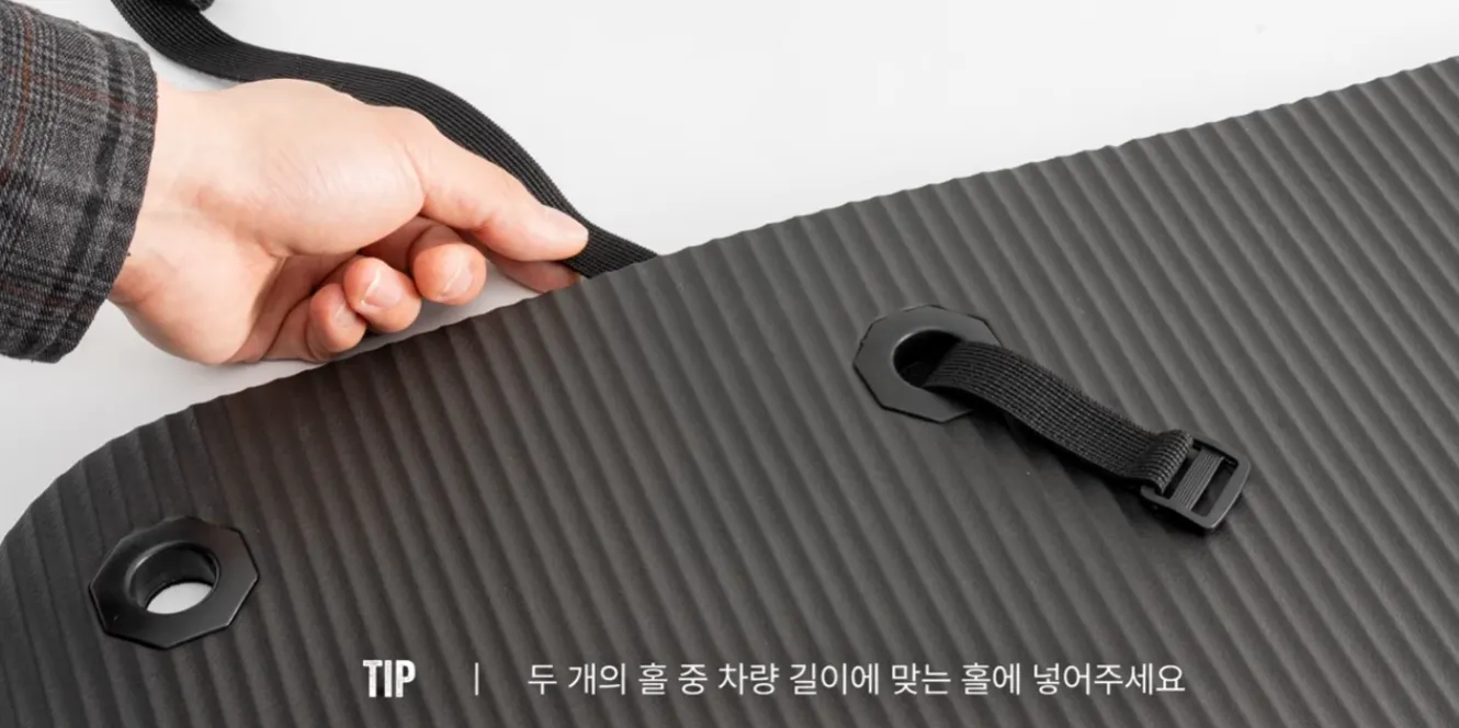 뒷편의 홀에 벨크로 스트랩을 넣어주세요.