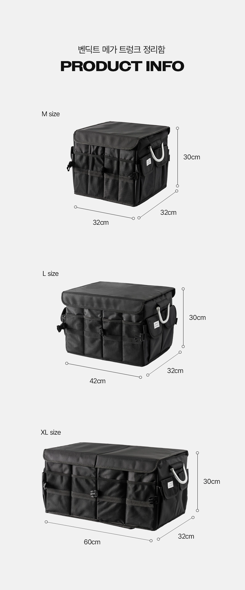 구성품 | 트렁크 정리함 본품바닥 보호 매트내부 칸막이덮개 |