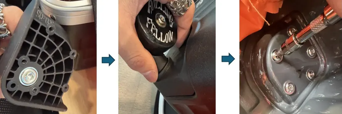 총 5개의 나사를 제거하여 기존 바퀴를 분리합니다.
