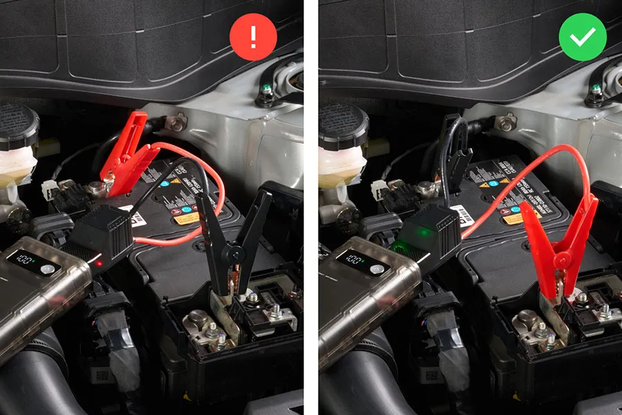 배터리 전압 비정상 또는 심한 방전: 차량 배터리가 완전히 방전된 경우, 점프 스타터는 부하를 인식할 수 없어 경고음을 발생시킬 수 있습니다. 또한, 점프스타터의 배터리가 50% 미만일 때도 경고음이 발생할 수 있습니다.