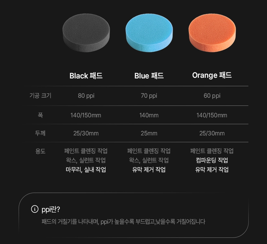 광택 작업 시 적합한 패드 및 관리 방법을 안내드립니다.