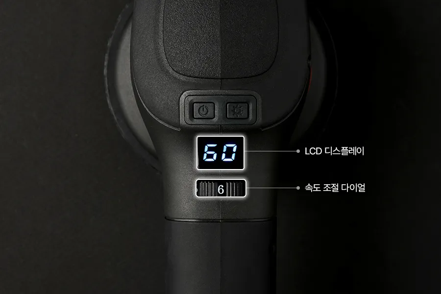LCD 디스플레이를 통해 현재 설정된 회전 속도를 확인할 수 있습니다.