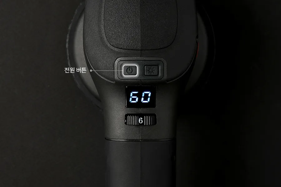 속도 조절 다이얼을 돌리면 회전 속도를 2,500RPM부터 6,000RPM까지 조절할 수 있습니다.
