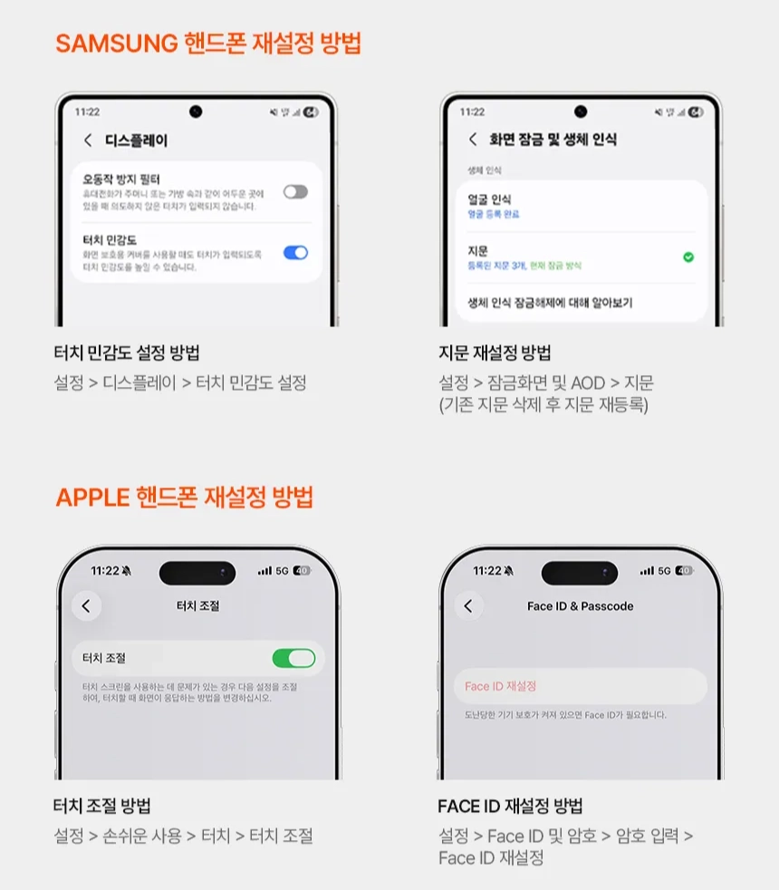 필름 부착 후 지문 인식, Face ID, 터치 민감도 등 기존 등록값의 정확도가 달라질 수 있습니다. 최적의 사용을 위해 생체 인식을 다시 등록 후 사용하시길 권장드립니다.