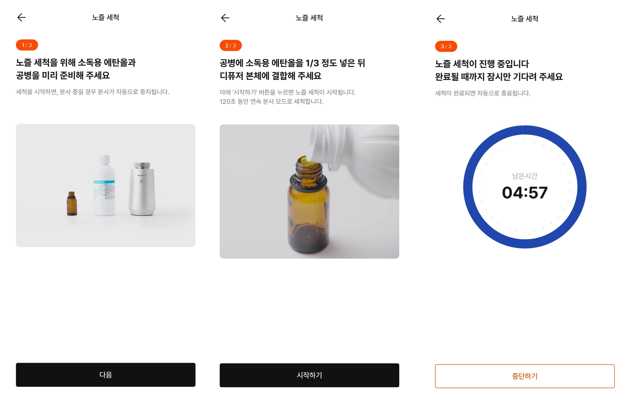 전용 오일 장착 & 교체 방법과 함께, 위생적인 사용을 위한 소독 절차를 안내합니다.